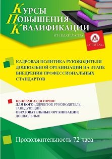 Кадровая политика руководителя дошкольной организации на этапе внедрения профессиональных стандартов (72 ч.)