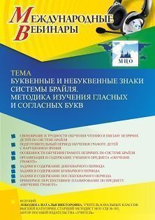 Международный вебинар Буквенные и небуквенные знаки системы Брайля. Методика изучения гласных и согласных букв