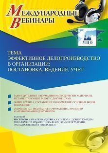 Международный вебинар Эффективное делопроизводство в организации: постановка, ведение, учет