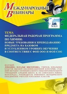 Международный вебинар Федеральная рабочая программа по химии: новые требования к преподаванию предмета на базовом и углубленном уровнях обучения в соответствии с ФОП ООО и ФОП СОО