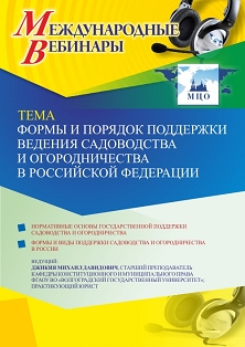 Международный вебинар Формы и порядок поддержки ведения садоводства и огородничества в Российской Федерации