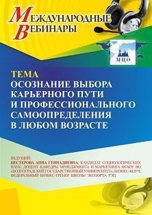 Международный вебинар Осознанный выбор карьерного пути и профессионального самоопределения в любом возрасте