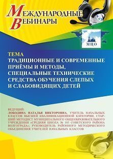 Международный вебинар Традиционные и современные приёмы и методы, специальные технические средства обучения слепых и слабовидящих детей