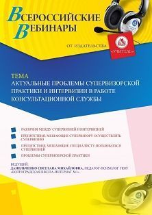 Вебинар Актуальные проблемы супервизорской практики и интервизии в работе консультационной службы