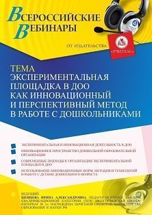 Вебинар Экспериментальная площадка в ДОО как инновационный и перспективный метод в работе с дошкольниками