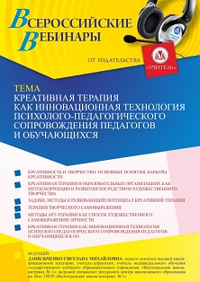 Вебинар Креативная терапия как инновационная технология психолого-педагогического сопровождения педагогов и обучающихся
