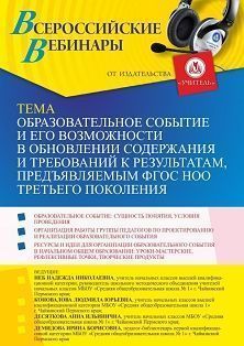 Вебинар Образовательное событие и его возможности в обновлении содержания и требований к результатам, предъявляемым ФГОС НОО третьего поколения