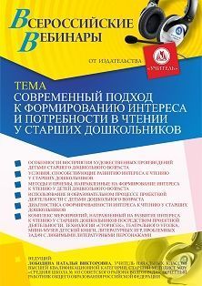 Вебинар Современный подход к формированию интереса и потребности в чтении у старших дошкольников