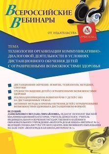 Вебинар Технологии организации коммуникативно-диалоговой деятельности в условиях дистанционного обучения детей с ограниченными возможностями здоровья